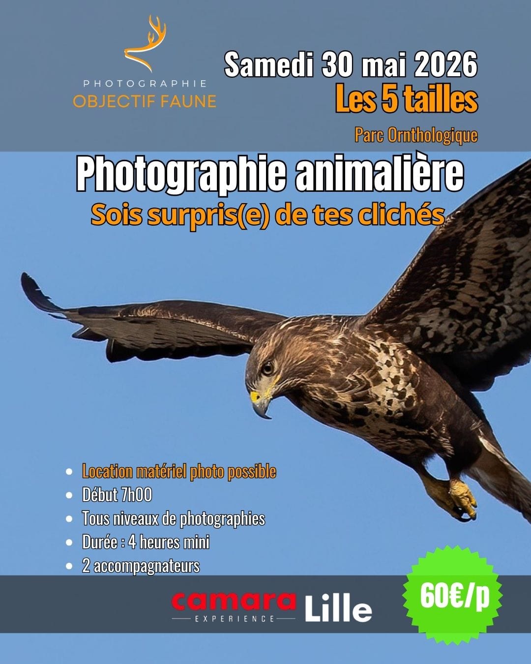 Rendez-vous le samedi 30 mai 2026 à partir de 7h00 pour un stage de 4 heures minimum.